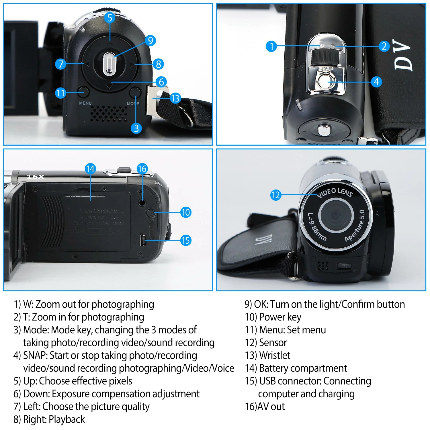 2.7in 16X Zoom DV Camera HD 1080P Digital Video Camcorder