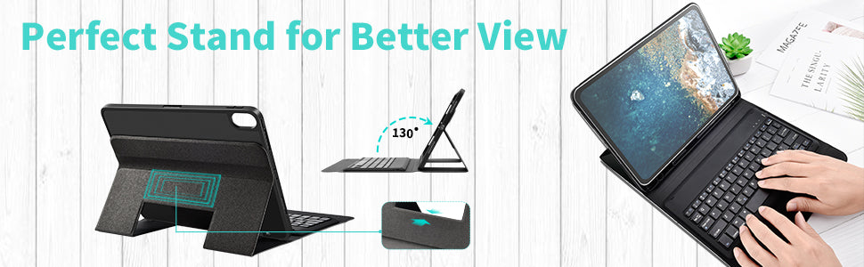 - 【Comfortable Viewing Angle kickstand Keyboard Case】Foldable kickstand allows for different angle tabletop viewing of your streaming movies and TV shows & Magnetic clasp insures your case remains closed during transport.