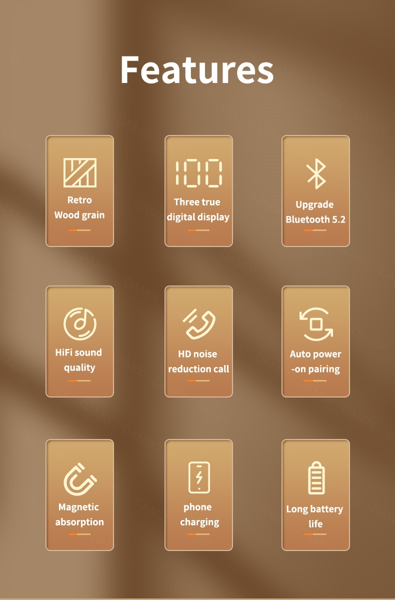 2, Charging case can full charge 2 earphones around 5 times, offer more music time.